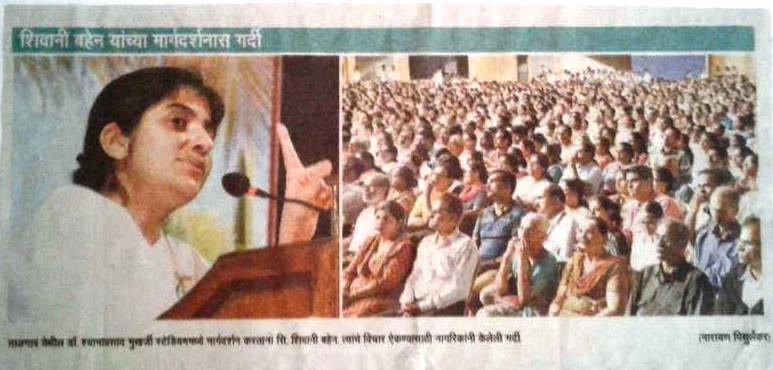 Sister Shivani addressing a huge gathering at Dr. Shyama Prasad Mukherjee Stadium in Panaji, Goa.