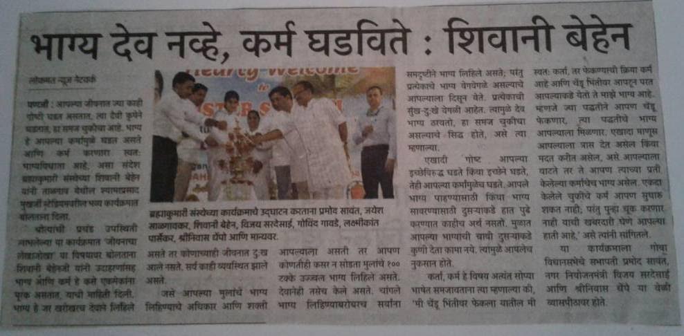 The lecture on ‘Balance Sheet of Life’, organized by the Brahma Kumaris unit of Panaji, Goa on Tuesday, 23rd May, 2017 evening, received overwhelming response from the public.